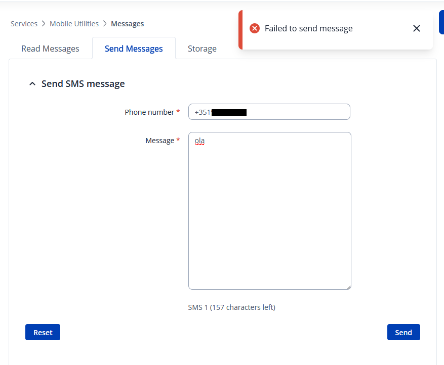 When performing a SMS Utility, as status, I get in system log: 631 Mon Mar 23 18:25:03 2026 events.notice SMS received from: +351 (internal modem) 632 Mon Mar 23 18:25:03 2026 daemon.notice urcd: Notice: ‘ip_block’ was restarted. Retrying to check for blocked numbers. 633 Mon Mar 23 18:25:05 2026 daemon.err /usr/sbin/sms_utils: [2-1] Failed to send SMS message ‘Router name - RUTX50; WAN IP - <WAN_IP>; Data Connection state - Connected; Network type - 5G-NSA; Signal Strength - -54; New FW available - No;’ to ‘+351’ 634 Mon Mar 23 18:25:05 2026 daemon.info /usr/sbin/sms_utils: Removing SMS ‘4’ from memory 635 Mon Mar 23 18:25:10 2026 daemon.info urcd: Removing SMS ‘4’ from memory