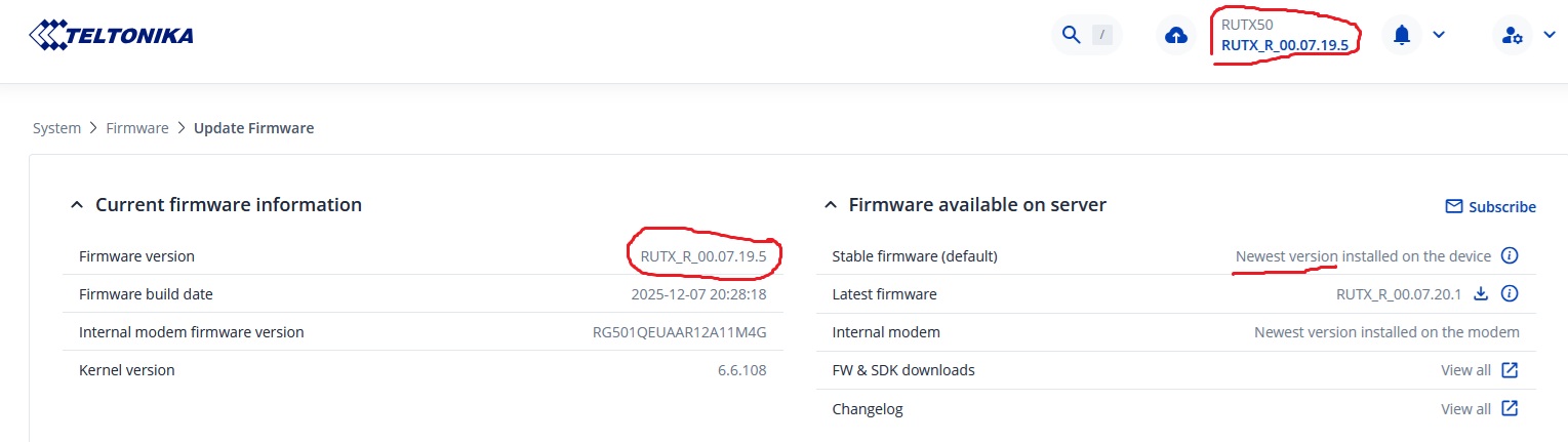 My RUTX50 informed me on the 5th (three Days Ago) that a new stable version was available and i updated from 07.18.3 to version 07.19.5.