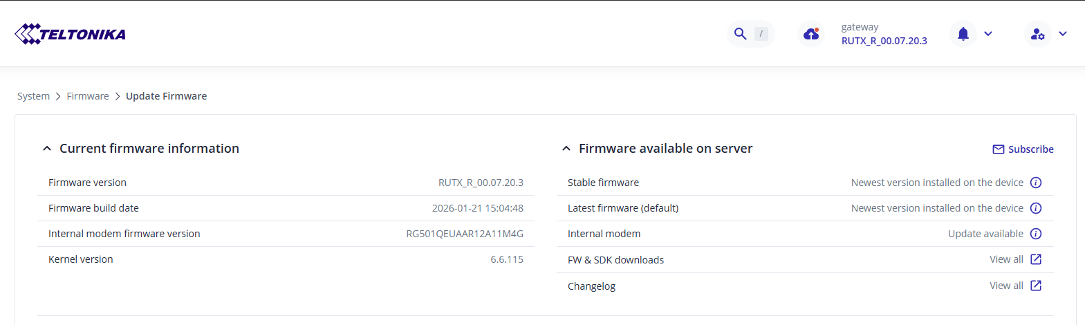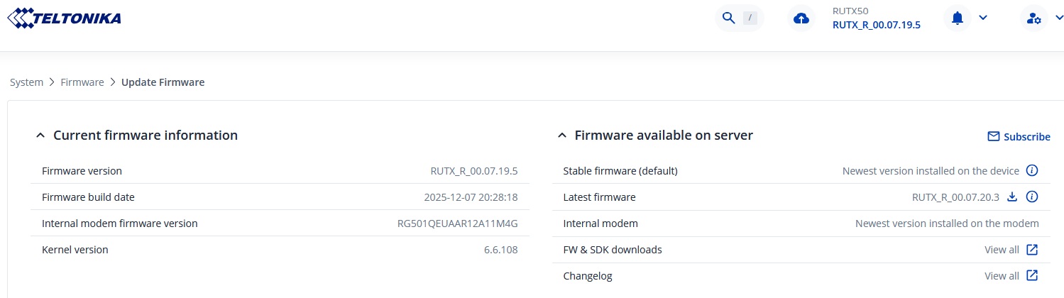 My RUTX50 is not telling me that there is a modem firmware update, but i’m on device firmware version 07.19.5 though.