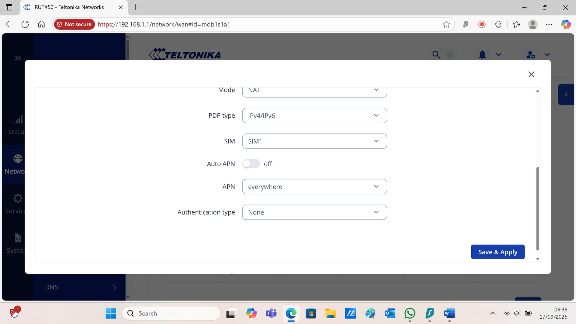 Hi theres various differences in configuaration pages but slowly getting there! in the APN config i dont seem to getting the option of choose APn when auto apn turned off?? do i need to configure the WAN atttached screen shots. Also i think the wiregaurd seems to be the better option?