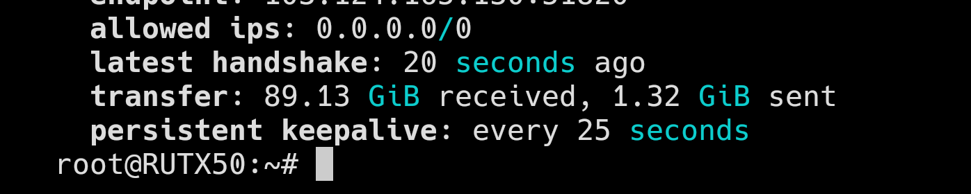 This indicates, that your WireGuard instance is now connected. Keep in mind that your traffic is still not going to go through this tunnel. You need to create the rules in order to route the traffic or specific clients through the VPN tunnel. For this, you can follow standard VPN instructions on teltonika website, as these instructions are unified and they apply for any VPN settings. The hardest part is connecting your WireGuard instance to the ProtonVPN server. Let me know how it went.