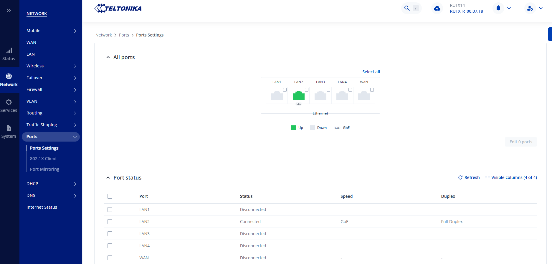 On the legacy WebUI for RUT9xx there is a useful graphic that simply shows which physical ports are in use. This is useful for diagnosing connection problems. I can’t find the same in the ‘new’ UI. Does it exist? Or even a text version?