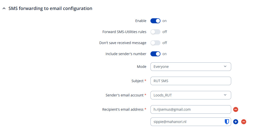 I’m not able to forward my SMS to email. I have firmware RUT2M_R_00.07.19 on RUT241