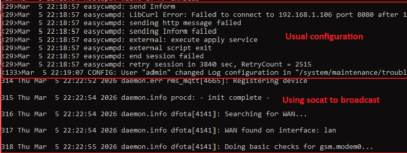 @Justinas don’t take this me pushing this to you so that I would expect you to do anything I’ve written here. RutOS is your product and all I was trying to accomplish was to find out reasons (use case) why someone would rather have broadcast syslog messages to subnet and then why it didn’t work after all. Then I thought heck I’ll find why it doesn’t work and once I knew then asking it from these coding capable LLM’s wasn’t much of effort from my part. I hope you don’t get me wrong. If you do, I’m sorry and just DM me what bugs you and I’ll never do that again.