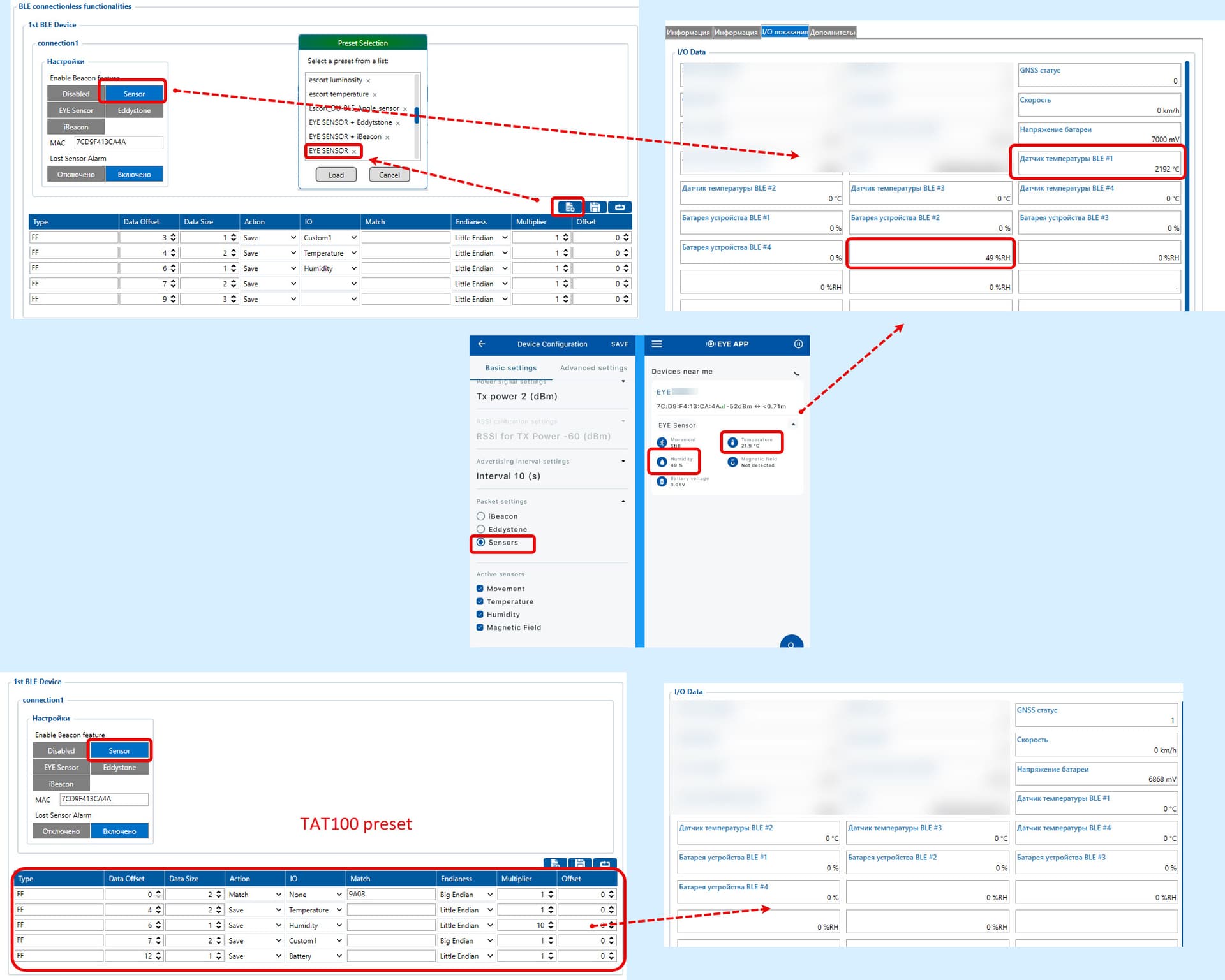 Switching to the TAT100 preset did not display any data. Moreover, when I switched back to the “EYE SENSOR” preset — the data disappeared again. Rebooting the TAT100 device did not help.