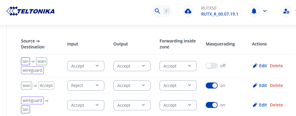 I installed a Teltonika RUTX50 on a small autonomously controlled boat. A Raspberry Pi4B is installed on the boat. It has the static IP 192.168.2.2. I also installed a Windows Geekom PC on the boat, which is connected to the Teltonika RUTX50 and the Raspberry via an unmanaged switch. The Windows PC has the IP address 192.168.2.10. I connected the RUTX50 to another Windows laptop via a VPS server. I want to access the local network 192.168.2.0 from my Windows laptop in order to send the data from my boat’s autopilot from the Raspberry to the laptop. The Wireguard connection works. I can ping the router via the Wireguard IP from my laptop, and the VPS server can ping both the RUTX50 and the Windows laptop. However, neither the VPS nor the Windows laptop can ping the local LAN network 192.168.2.0. It seems as if the router is not routing to the network. Not even the Teltonika RUTX50 can ping the network 192.168.2.0 or vice versa. The Teltonika provides the internet connection to the raspberry pi. The Teltonika is the default gateway to the internet. The problem is that it has always worked before. Then I performed a Teltonika update and now it no longer works. I reset the Teltonika to factory default again, but that didn’t help either. I would appreciate any help.