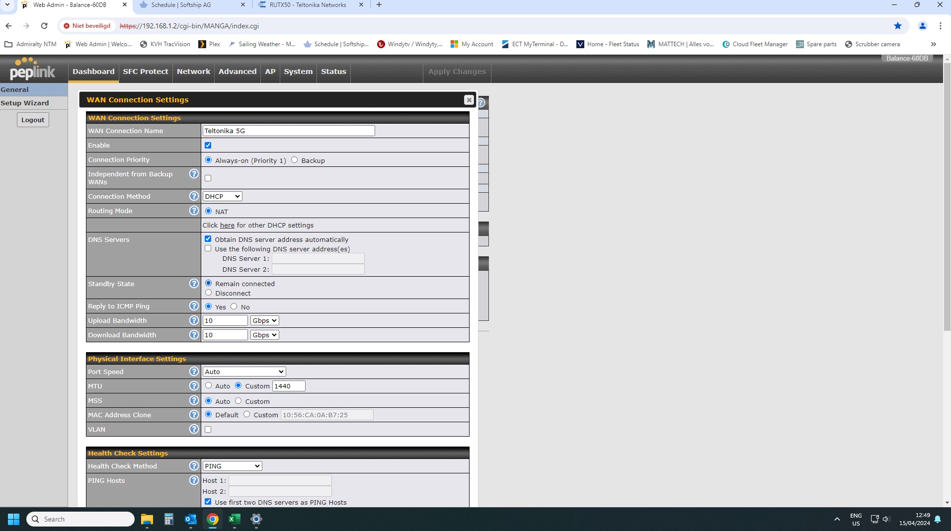 This might be an issue with your main router (Peplink), to rule this out could you set your router to bridge mode and plug the ethernet cable into the router LAN port and another end to your PC then check what IP address you are getting? Regular DHCP or your ISP-provided IP?