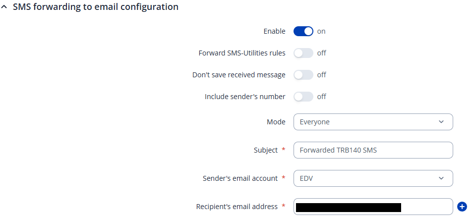 recently, i bought the TRB140 to forward SMS messages to Emailadresse and http config. After configuring the email recipient first and successully testing it. I tried to enable the forwarding function by the incoming sms. The TRB140 device receives the sms but wont deliver it the email address. Is there another configuration step necessary?