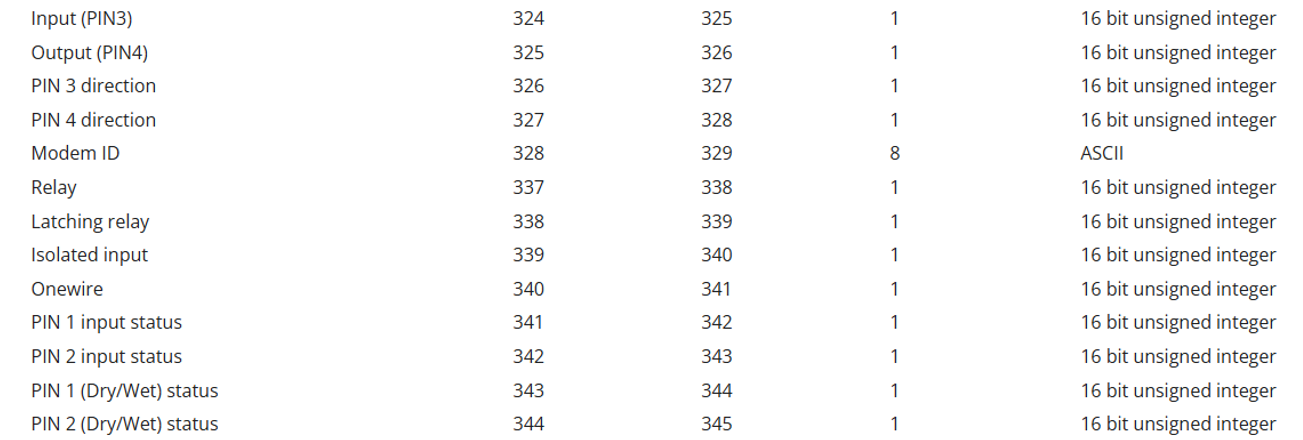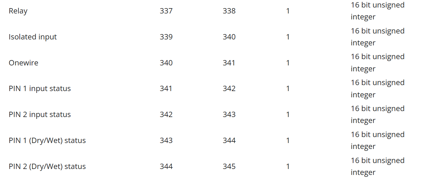 Can you please let me know which physical pins are monitored on which address exactly? (i.e. Which register do I need to read in order to get the status of PIN No3 (on power socket), PIN No4 (on power socket), DI1 (on input/output connector), DI2(on input/output connector), relay 1, relay 2 … and so on?