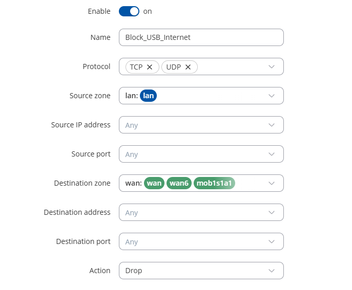 The problem is that when the normal USB connection is established, it basically ignores my own LAN/WLAN/LTE connection and replaces it with the LTE connection of the USB connection/TRB145 interface.