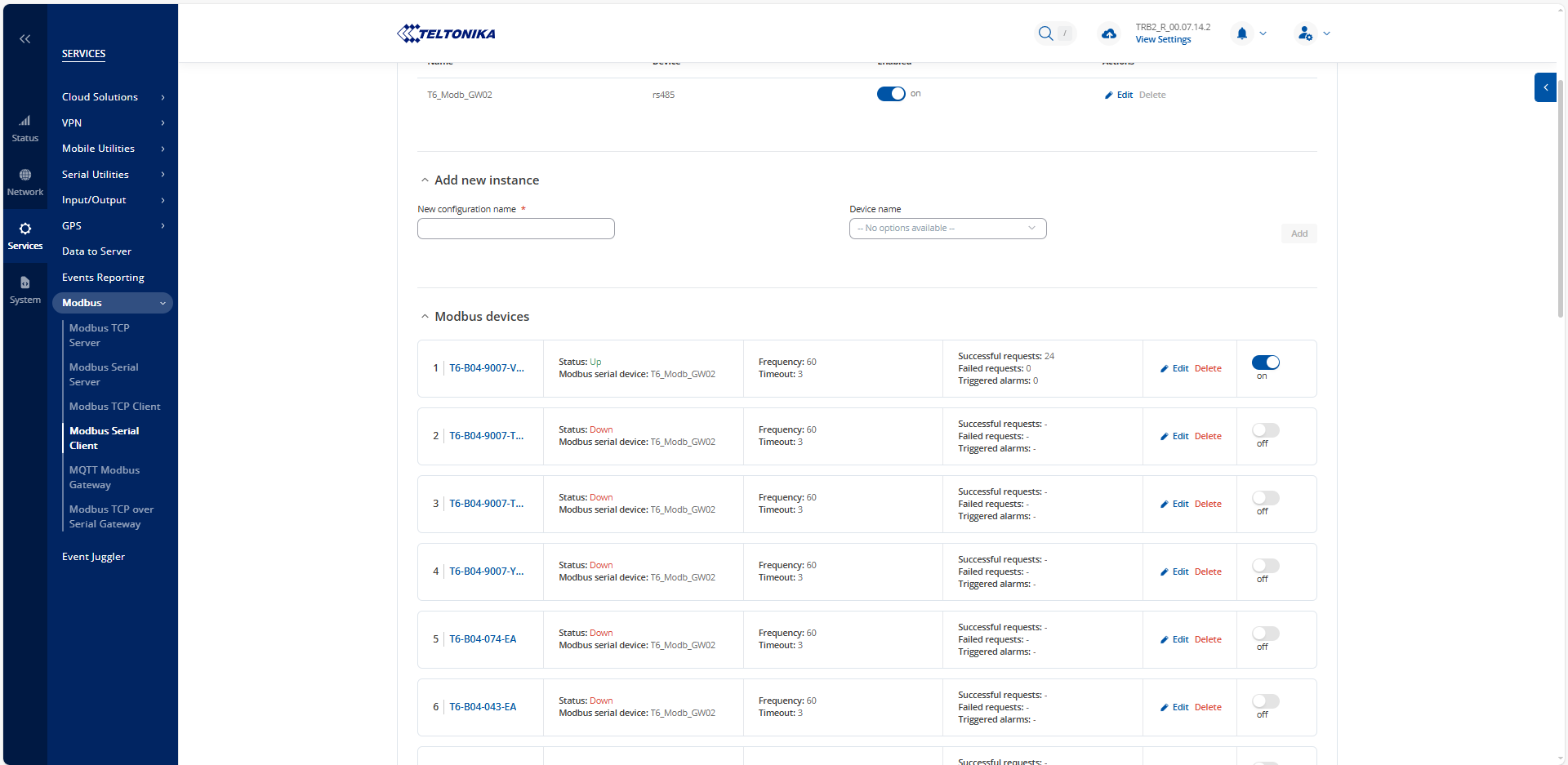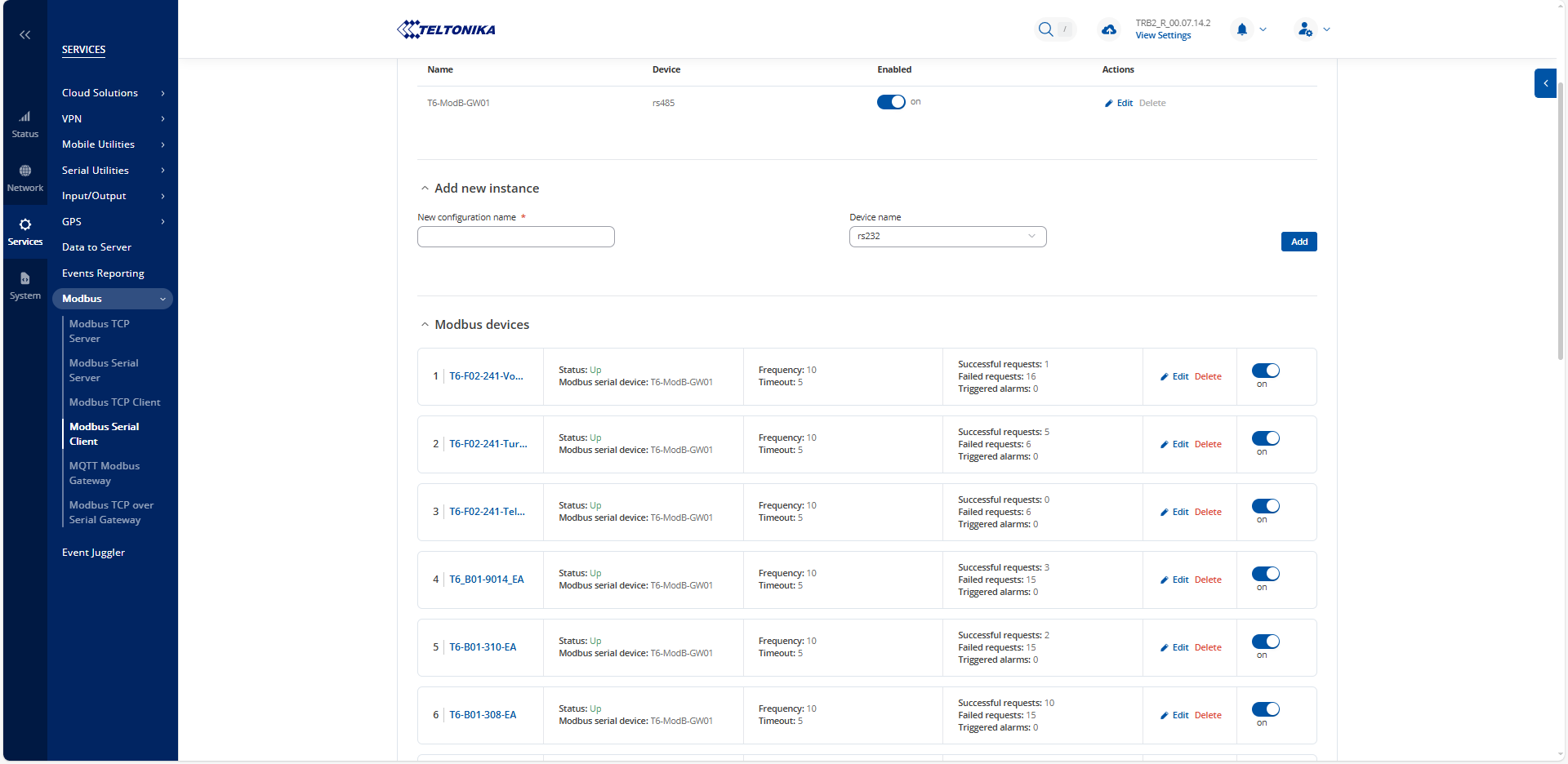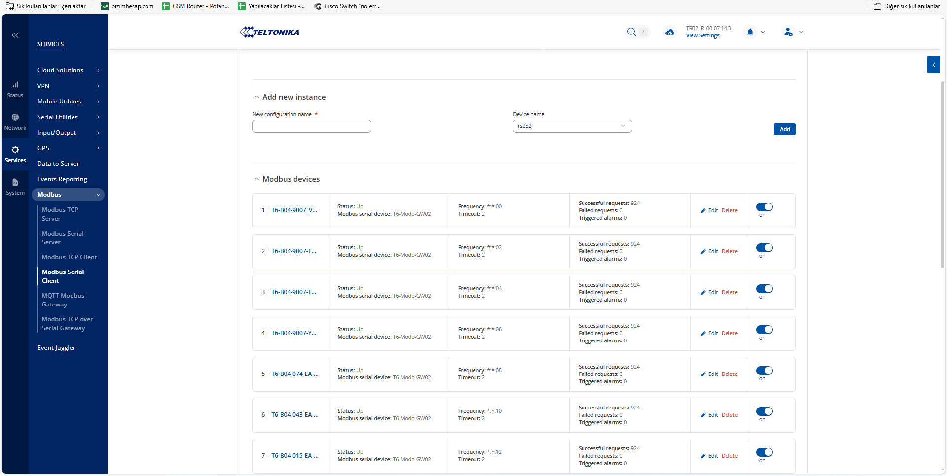 We are using a total of 18 TRB245s in a project. The devices have the current 7.14.2 software. Within the scope of the project, we collect data from modbus energy analyzers and send them to a platform with MQTT. We need to receive data from 18 analyzers in some places and 25 analyzers in some places per TRB245, but we are experiencing some problems as follows.