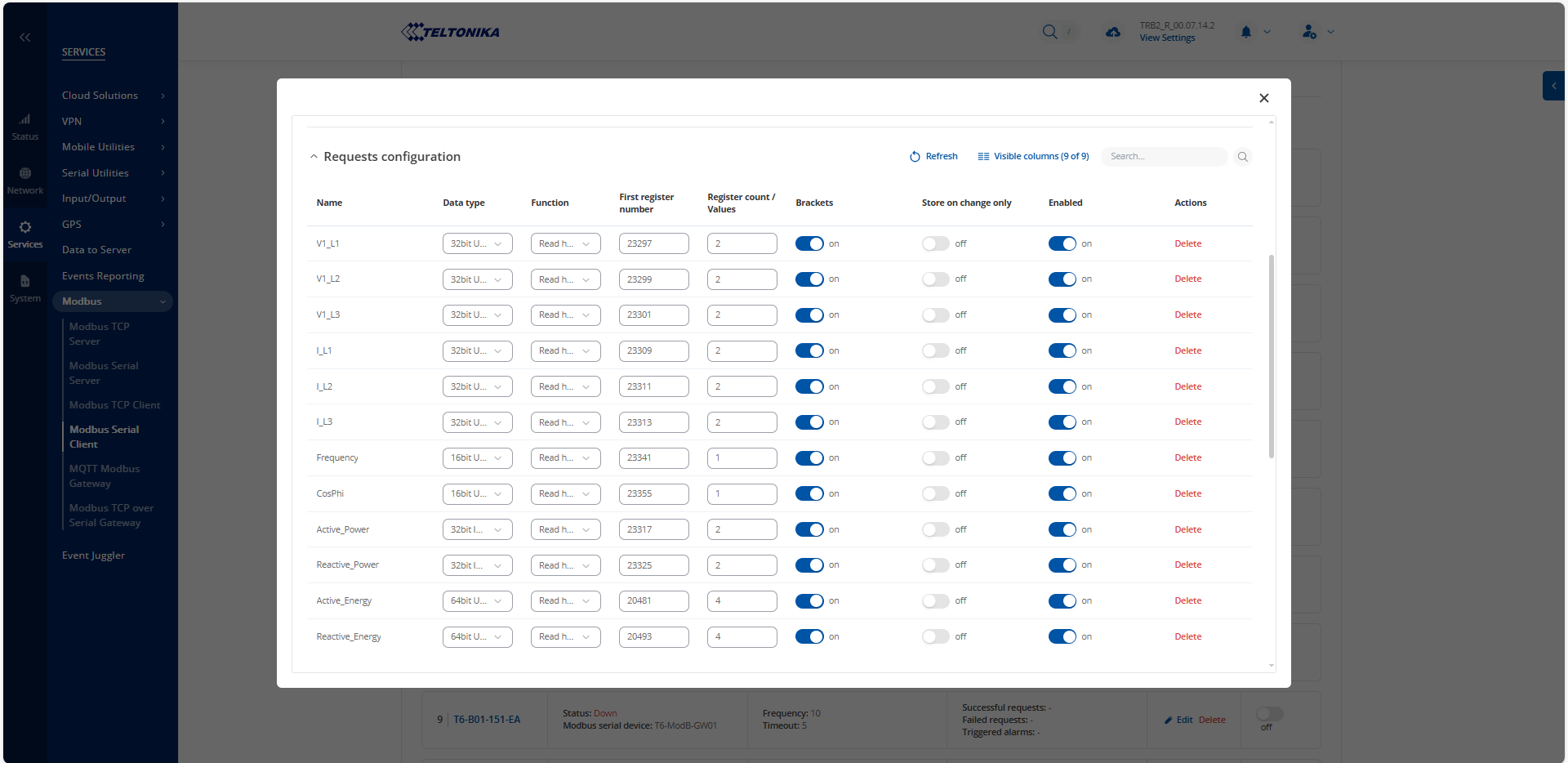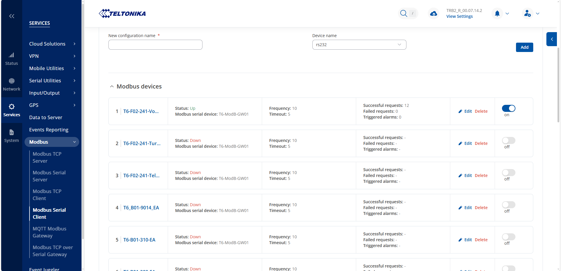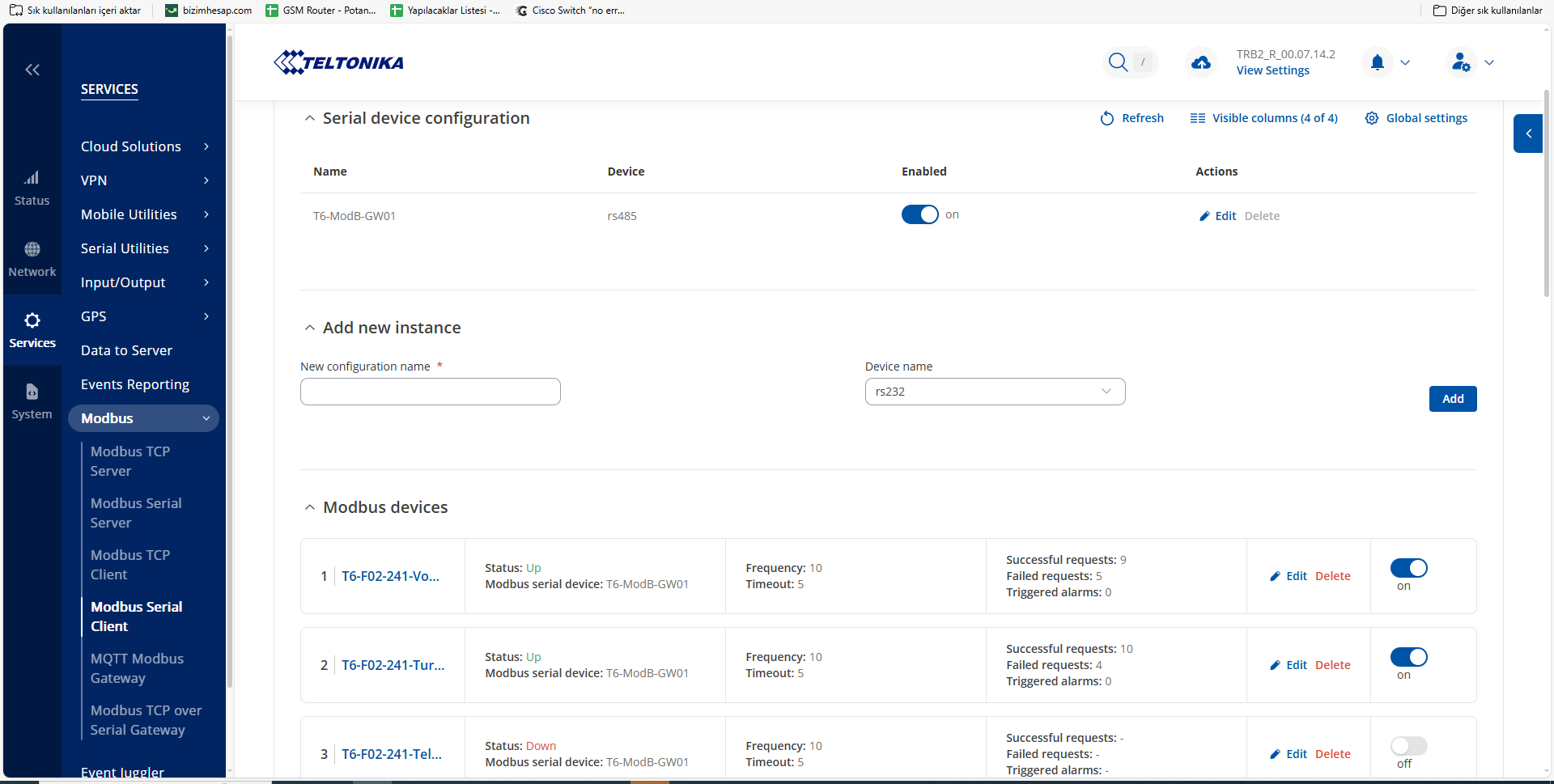 We are using a total of 18 TRB245s in a project. The devices have the current 7.14.2 software. Within the scope of the project, we collect data from modbus energy analyzers and send them to a platform with MQTT. We need to receive data from 18 analyzers in some places and 25 analyzers in some places per TRB245, but we are experiencing some problems as follows.
