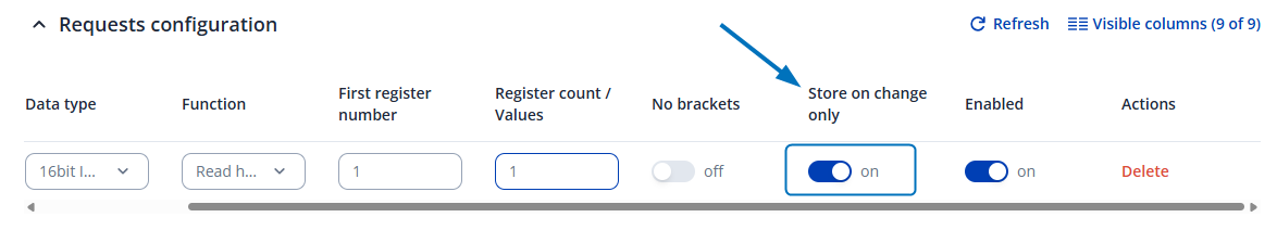 If you want to only be informed ONCE, in the “Services → Modbus → Modbus TCP Client → (edit) → Alarm Configuration → (edit)” menu, you can set “Action frequency” to “First trigger”: