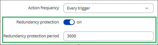 Alternatively, if you want to be informed periodically (e.g. once an hour), you can enable the “Redundancy protection” and set your own time period how often this alarm could be triggered: