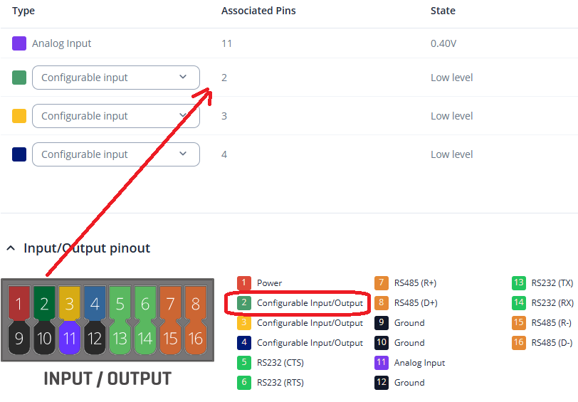 On the physical TRB246 module, the naming of the configurable pins differs compared to what they are named in the Input/Output section when accessing the module interface.