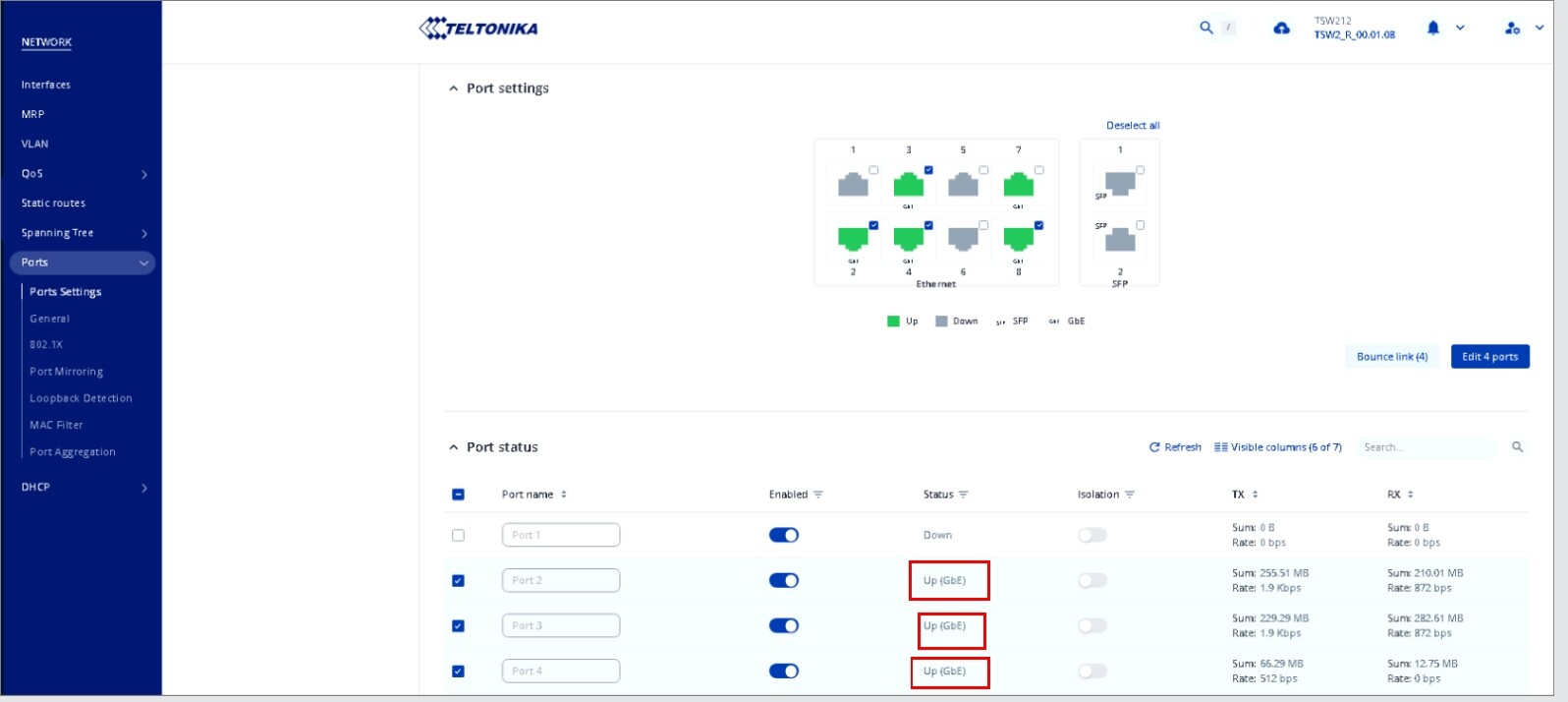 Additional details can be found here: TSW212 Ports - Teltonika Networks Wiki