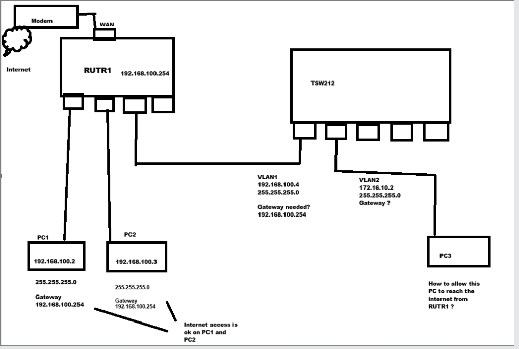 I would like the TSW212 on VLAN1 to be connected to R1 therefore its on 192.168.100.Xwhatever.