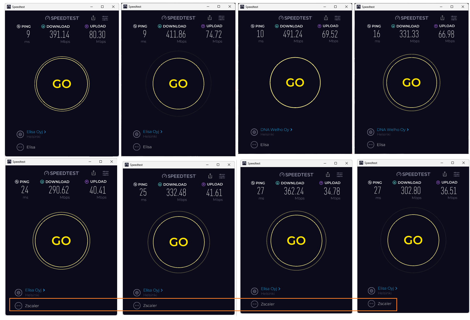 @heartless@Marcelo.Barros my stupidity in this case. I was using the PC provided by my employer and they installer a “Zscaler” cyber security system which I didn’t notice was affecting the Speedtest app tests. The upper examples are from a personal PC.