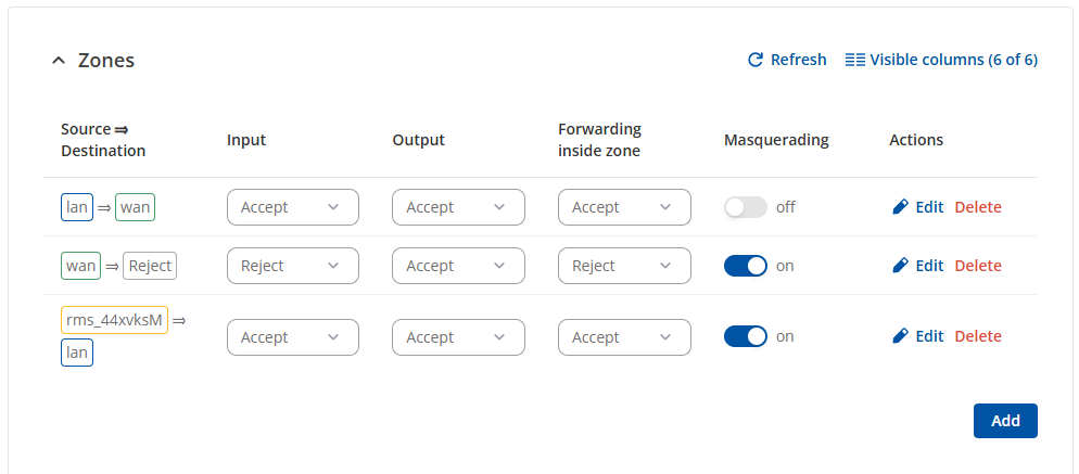 Could you please enable Masquerading on the LAN → WAN zone (under Network → Firewall → Zones) and then recheck the PLC reachability from your laptop connected via RMS VPN?