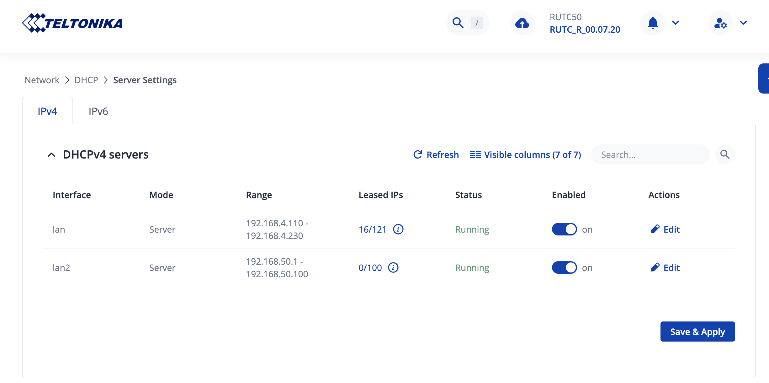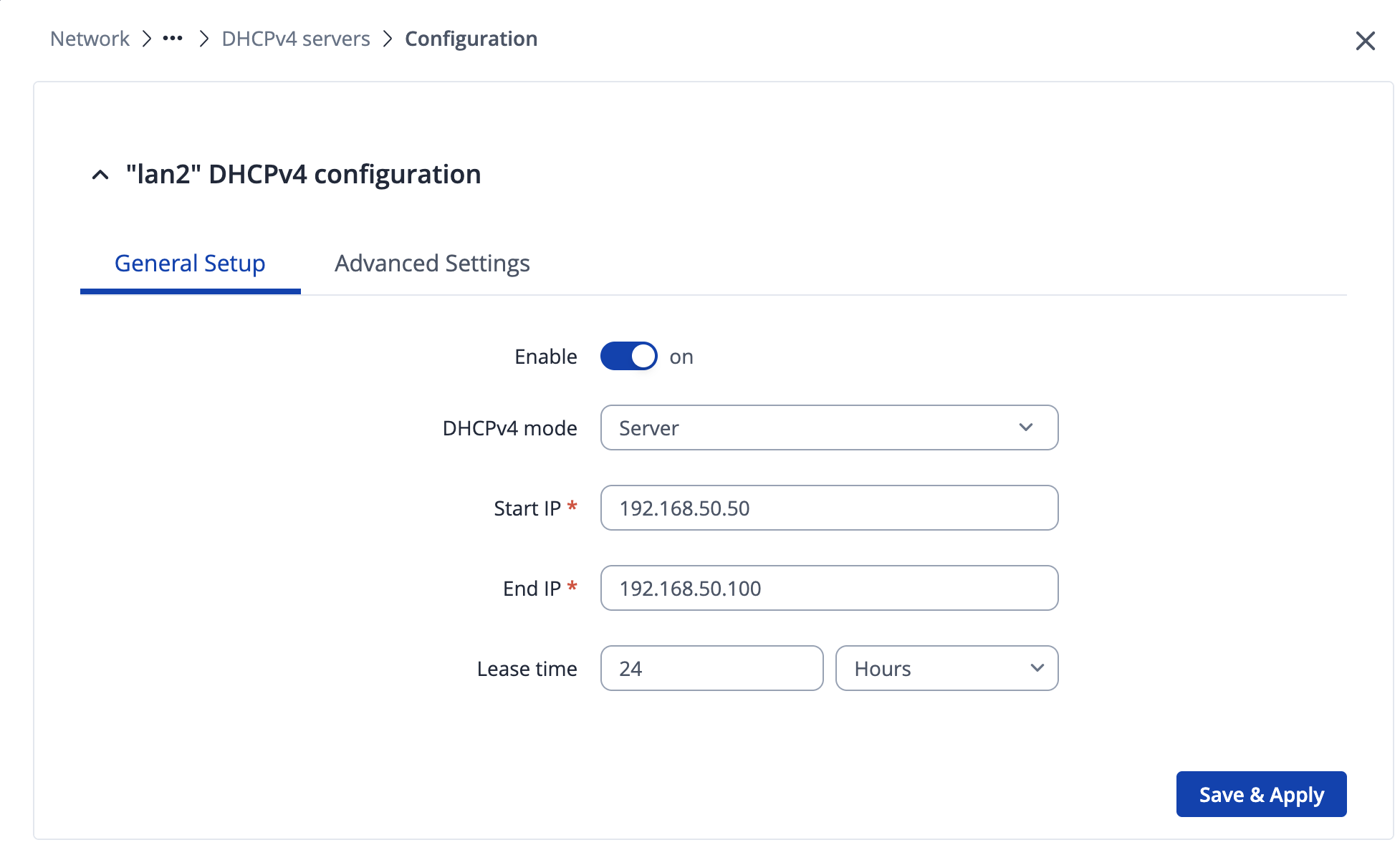 Please… can you share Network > dhcp > Server Settings ?