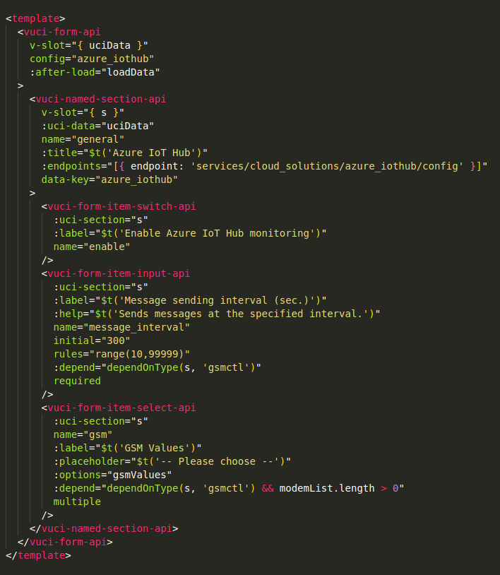I think the Teltonika source vue files are NOT included in the SDK as a search for *.vue only finds the Example.vue & ExampleEdit.vue files, which makes learning how they work difficult. Can these files be made publicly accessible?